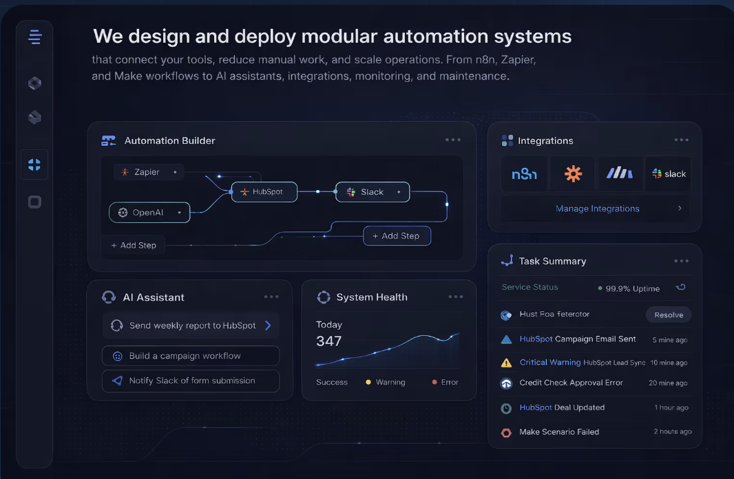 We designed and developed AutoFlowOS — a complete AI automation ecosystem that connects all business tools into an intelligent, autonomous flow.